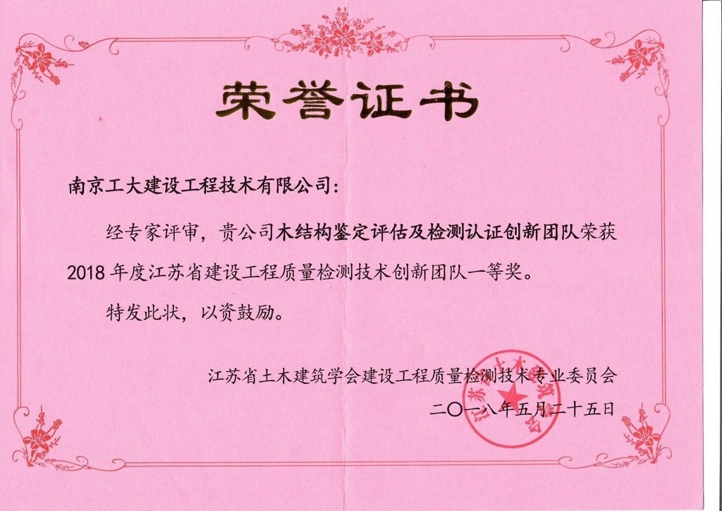 江蘇省建設(shè)工程質(zhì)量檢測(cè)技術(shù)創(chuàng)新團(tuán)隊(duì)一等獎(jiǎng)