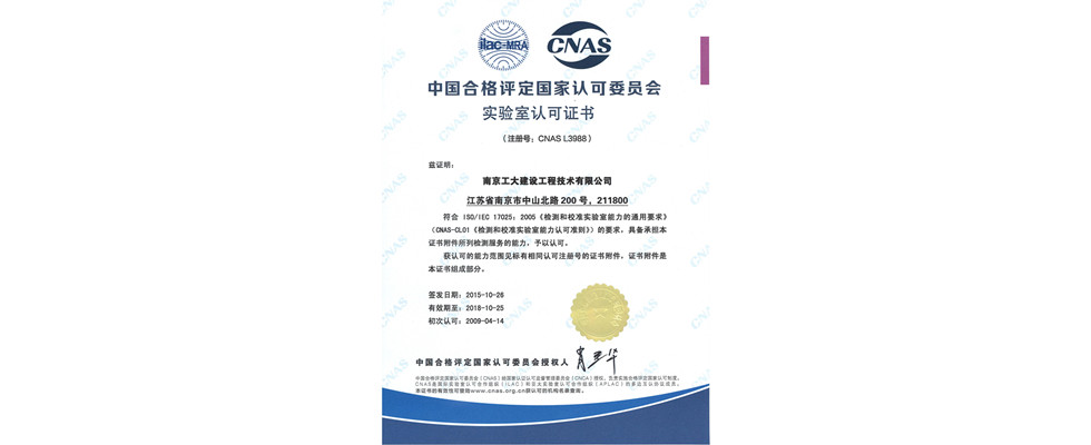 CNAS實驗室認可證書