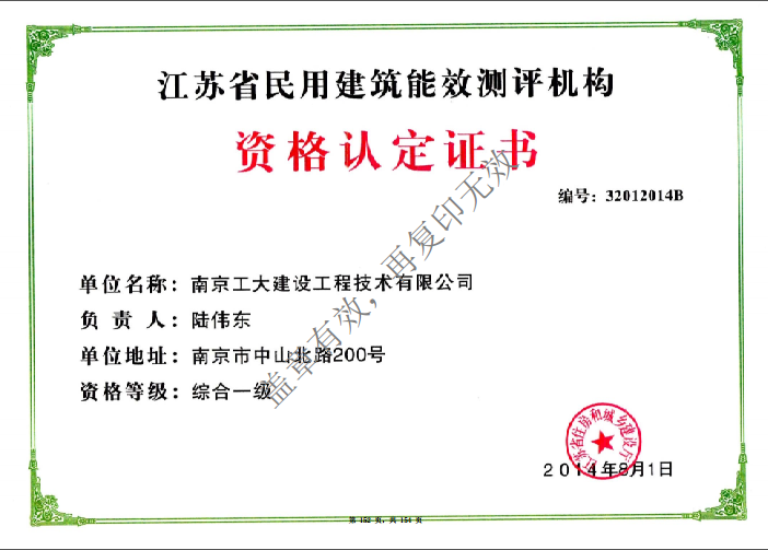 民用建筑能效測(cè)評(píng)機(jī)構(gòu)資格認(rèn)定證書(shū)